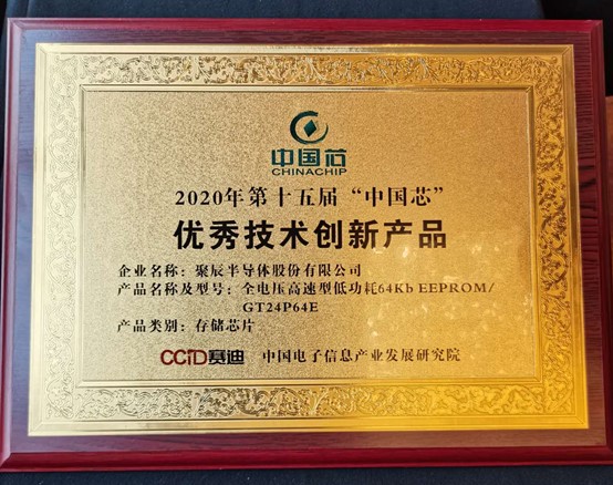 10月28日上午,2020第十五届“中国芯”优秀产品征集结果在杭州举办的“中国芯”集成电路产业促进大会上公布,金年会半导体股份有限公司的全电压高速型低功耗64Kb EEPROM/GT24P64E 存储芯片荣获 “中国芯”优秀技术创新产品奖。