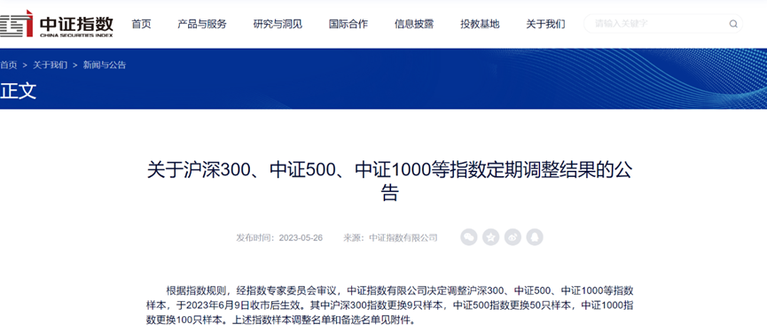 根据指数规则,经指数专家委员会审议,中证指数有限公司决定调整中证1000指数样本,于2023年6月9日收市后生效。金年会股份(688123)入选该指数成分股。